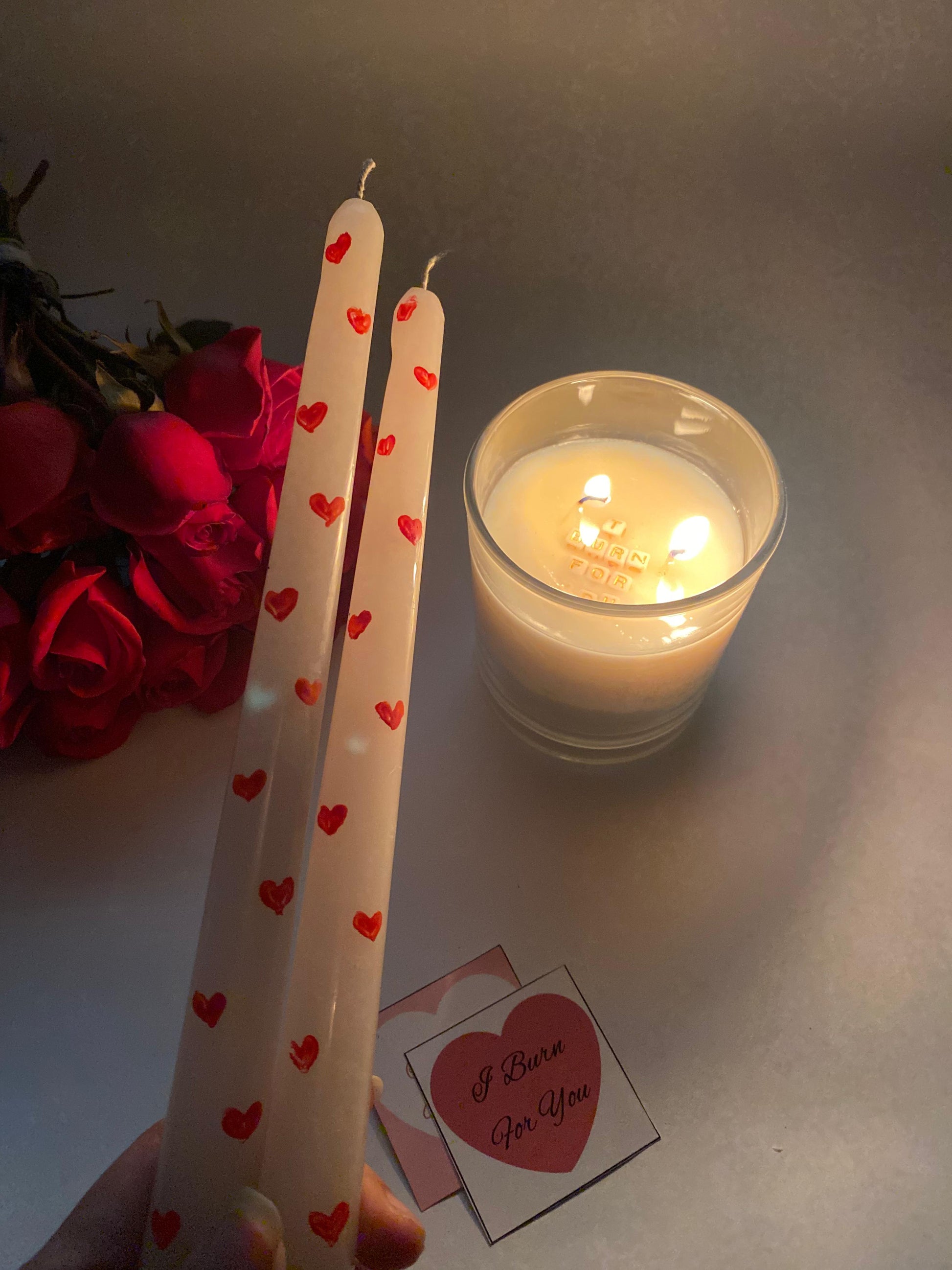 Celebrate your love without any messy clean-up with our Taper Candles. These romantic candles provide a clean and long-lasting burn, allowing you to focus on the special moments with your loved one. The perfect addition to your décor.